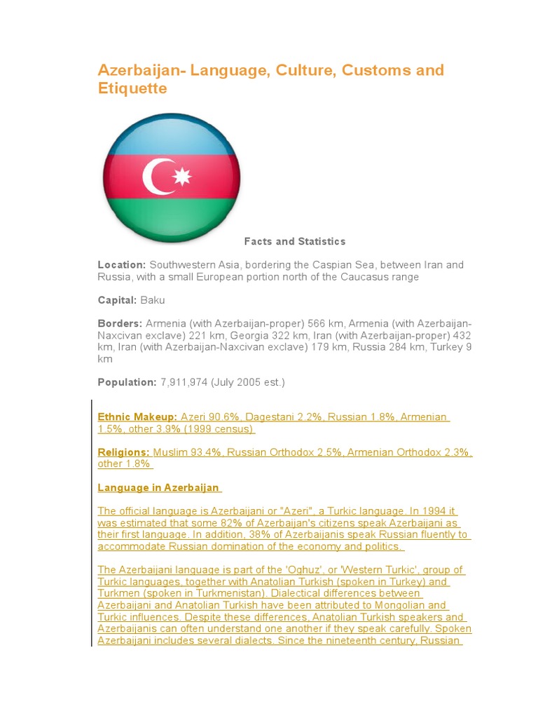 There are around 7.3 million native speakers, and another 8 million second language speakers. Azerbaijani is the only official language in azerbaijan and is spoken by the majority of its population, however, a number of minority languages also exist in the country. Azerbaijan language is also the mother tongue of more than 30 million azerbaijanis living in the according to the genealogical classification, azerbaijan language is one of the turkic languages. Several minority languages are also spoken in azerbaijan. Start the conversation with essential phrases from mango's personalized course, and access mango from wherever you are.